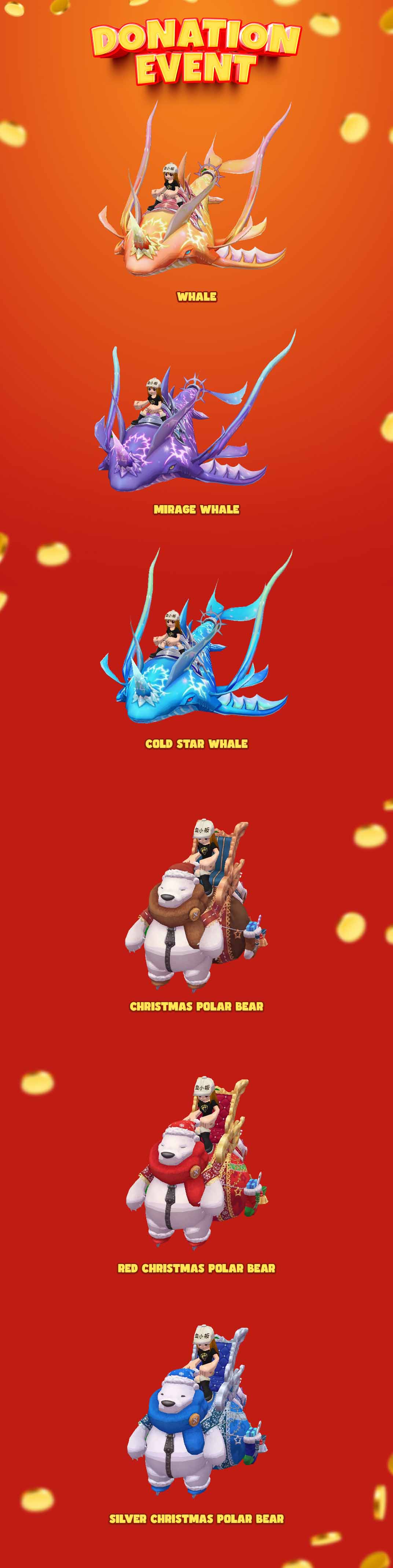 Tidak hanya itu! Jika kamu melakukan top-up DD Coin minimal 100.000. Kamu bisa memilih hadiah 1x Gacha Box 2* atau 1x Whale / Christmas Polar Bear Coin*.